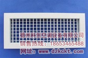 双层百叶风口,广泛应用于空调系统中作送风口,根据使用要求,风口后面可配制铝制风量调节阀(人字闸),双层百叶风口具有两层相互垂直页片调节水平和垂直页片的角度,调整气流扩散面,以改变射程,风口的外框宽度有宽边框和窄边框两种,可用于特殊要求的通风系统中。